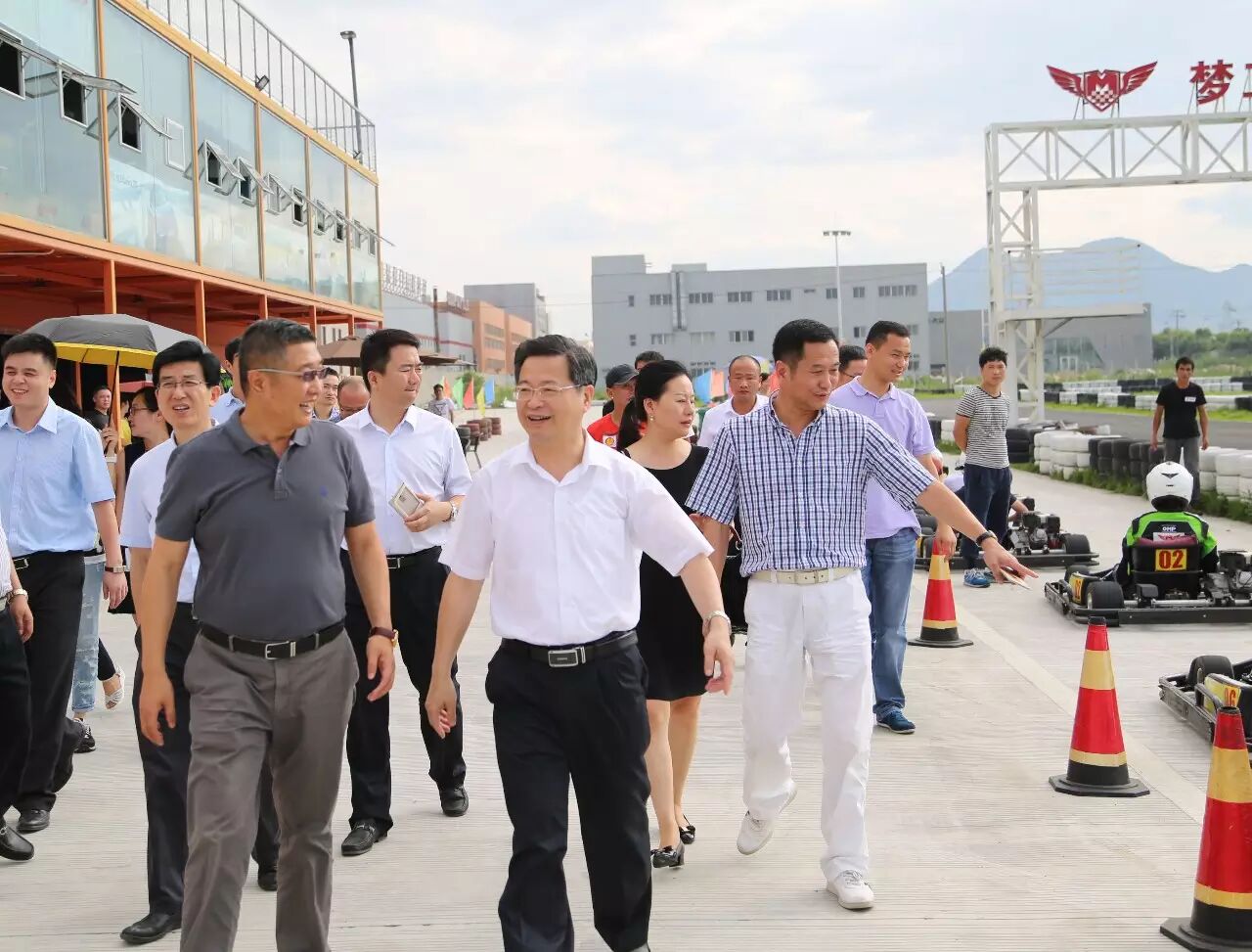 “灿鸿”擦肩而过,原定指挥抗台的市领导一样没闲着,这不,7月12日下午,省委常委、市委书记陈一新,市委常委、市委秘书长仇杨均,副市长胡纲高等一行来到力天汽车梦工场视察温商回归工作。这是继去年温州经济技术开发区百亿项目开工典礼之后,陈书记一行再次造访梦工场。迎着午后阳光,陈书记一行首先来到力天汽车运动中心。赛场上十几辆卡丁车你追我赶,近百名车手与观众在专注观战。陈一新被夏日里的“速度与激情”感染,他走近赛道,目光追逐着飞奔的卡丁车,脸上露出赞许的微笑。