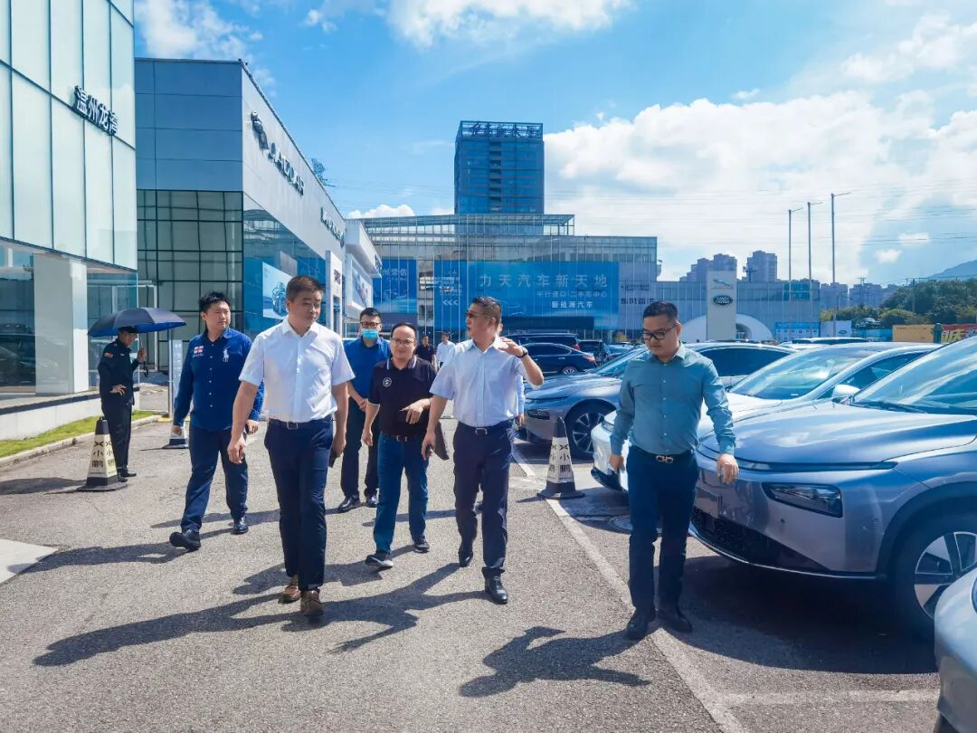 10月9日上午,温州市商务局党组书记、局长彭魏滨,温州市商务局消费促进处处长木忠诚一行莅临力天汽车集团调研指导。力天集团董事长曹绍国、力天汽车集团总经理刘坚等热情接待并陪同参观力天汽车公园温州新能源汽车基地、力天汽车梦工场。
